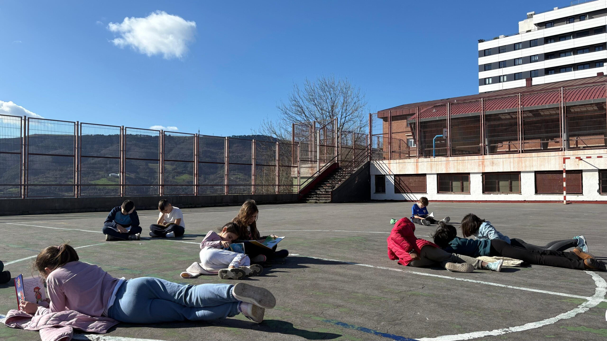 Gaur 4. mailako ikasleok une berezi bat izan dugu: patiora atera gara eguzkitan irakurtzera! Urtarril osoko eurite eta hotzaren ostean, eguraldiak tregua pixka bat eman digu gaur, eta ez dugu aukera galtzen utzi. Irakurketa opari bat bezala senti dezaten noizbehinka antolatzen ditugun ekintza horietako bat izan da gaurkoa.